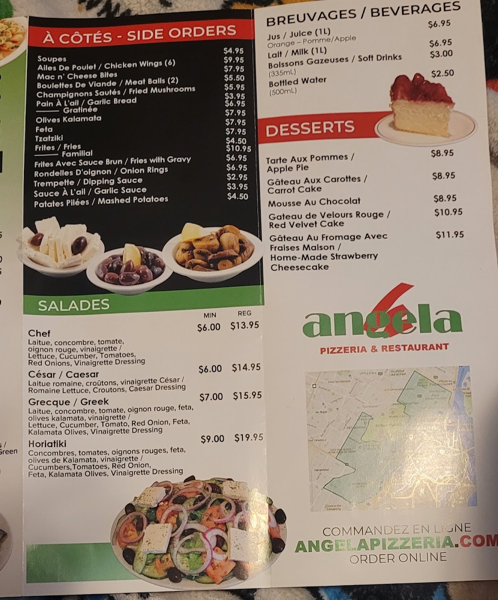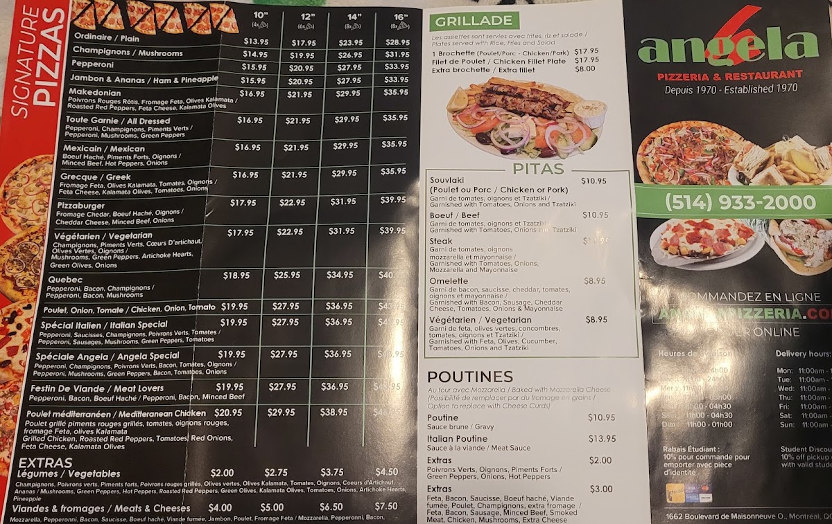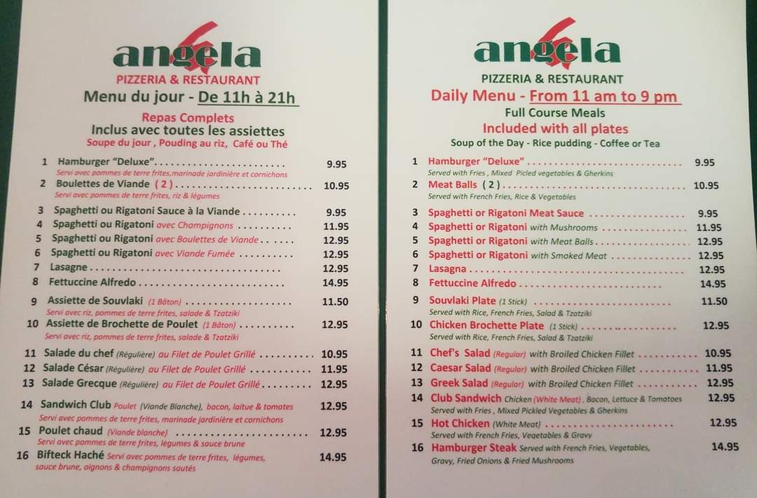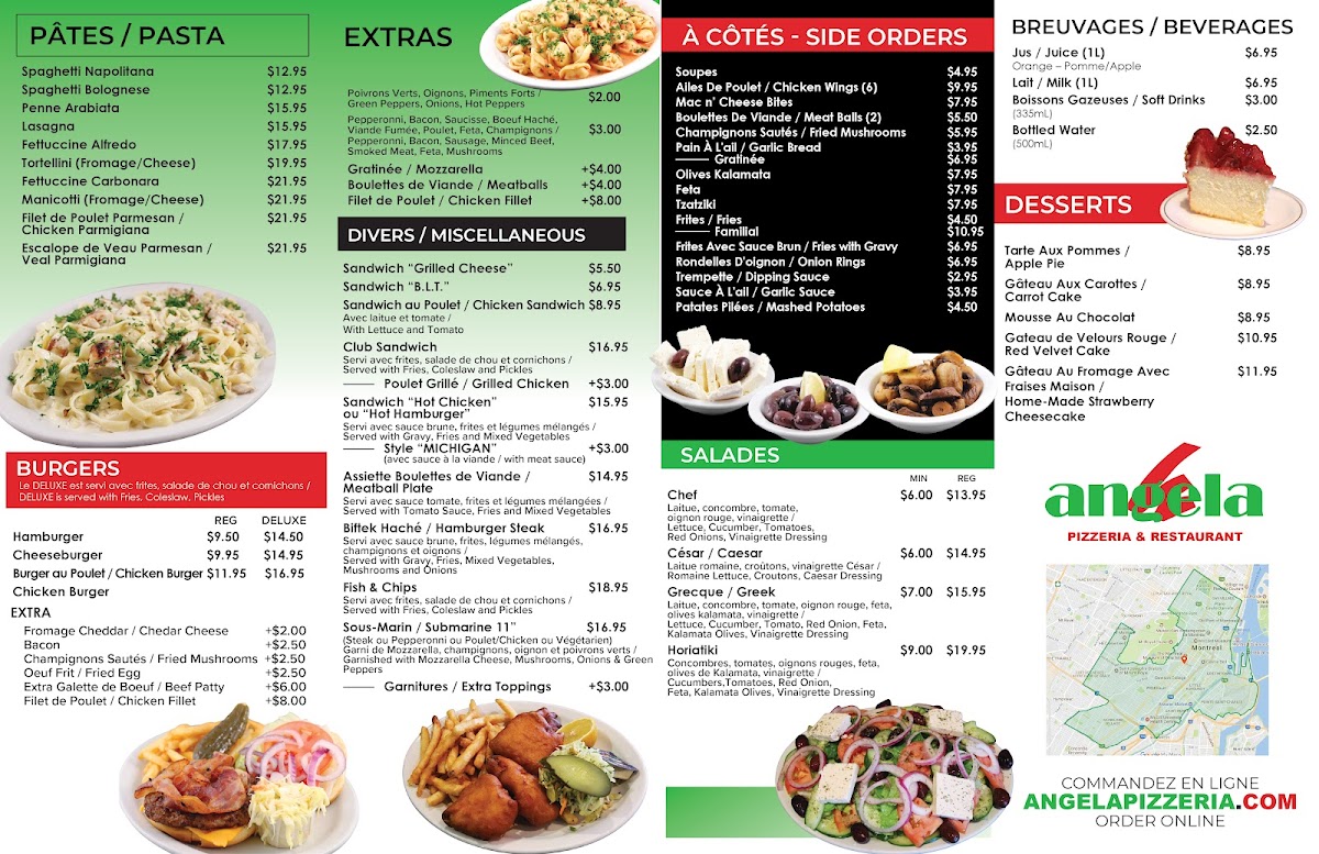 Welcome to Angela Pizzeria & Restaurant, located at 1662 Boulevard De Maisonneuve in Montréal, Québec. This cozy restaurant offers a wide range of delicious dishes that will satisfy any craving.